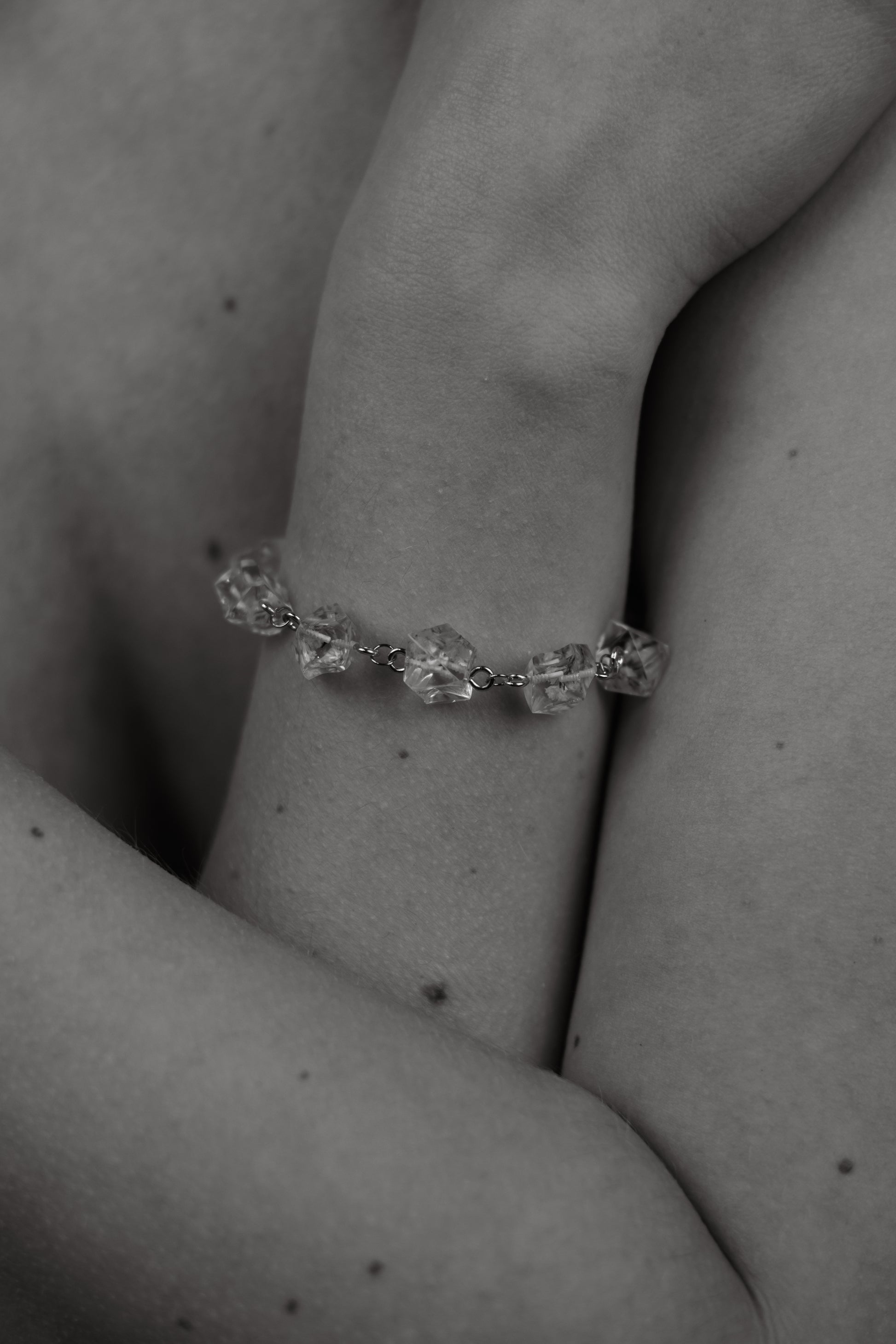 Modern form meets natural beauty. Crystal-shaped resin links, each encasing real, un-dyed gypsophila flowers, come together to create a striking yet refined bracelet. The angular shapes offer a clean, geometric contrast to the delicate flowers inside. Finished with a secure stainless steel clasp and available in gold or silver, it’s a statement that feels both effortless and enduring.
