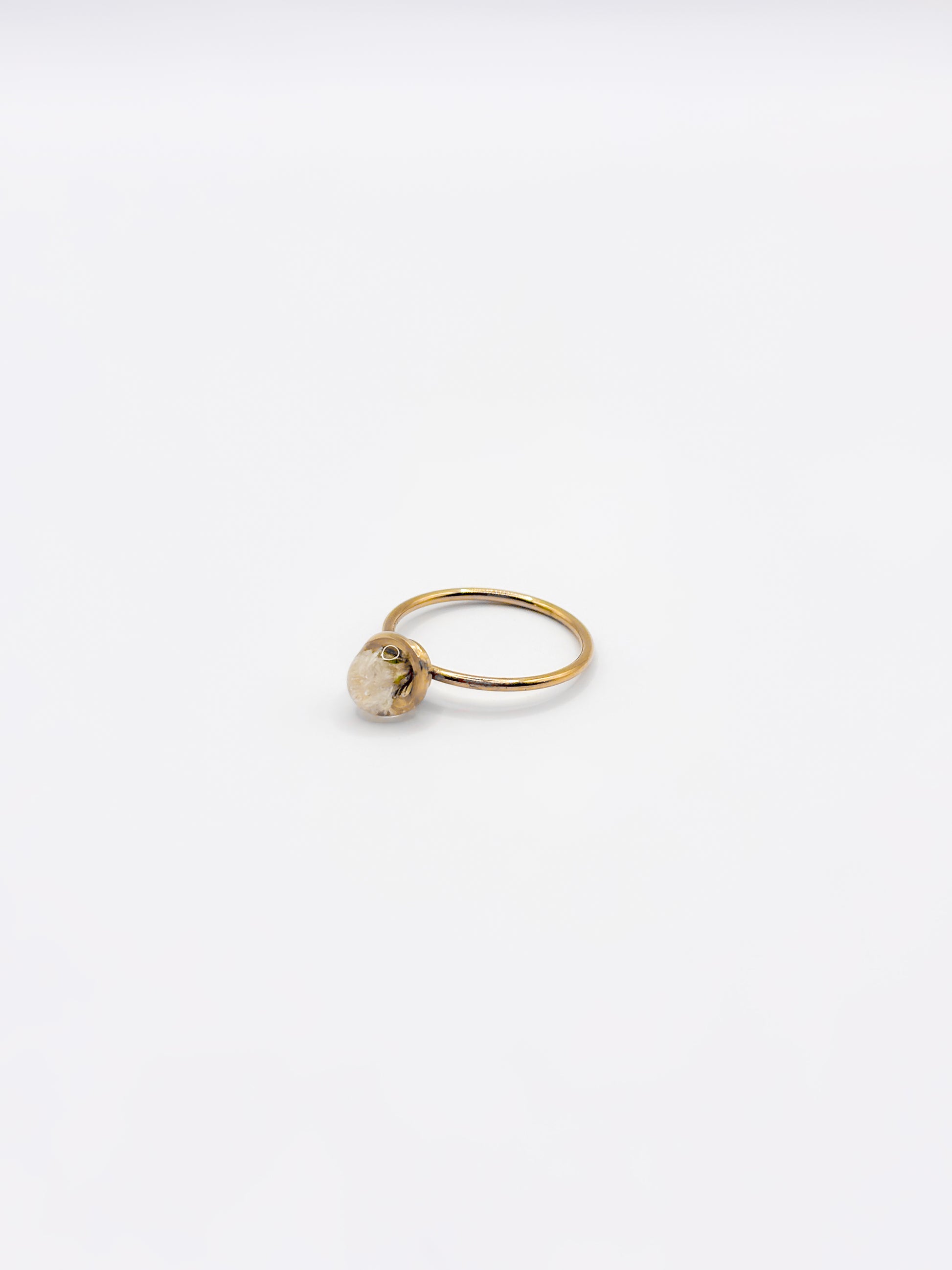 A modern heirloom in the making. This ring features a single preserved gypsophila flower set in clear resin, taking the place of a traditional stone. The slim band is available in your choice of gold or silver, designed to highlight the natural beauty at its center. Simple, elegant, and full of meaning.
