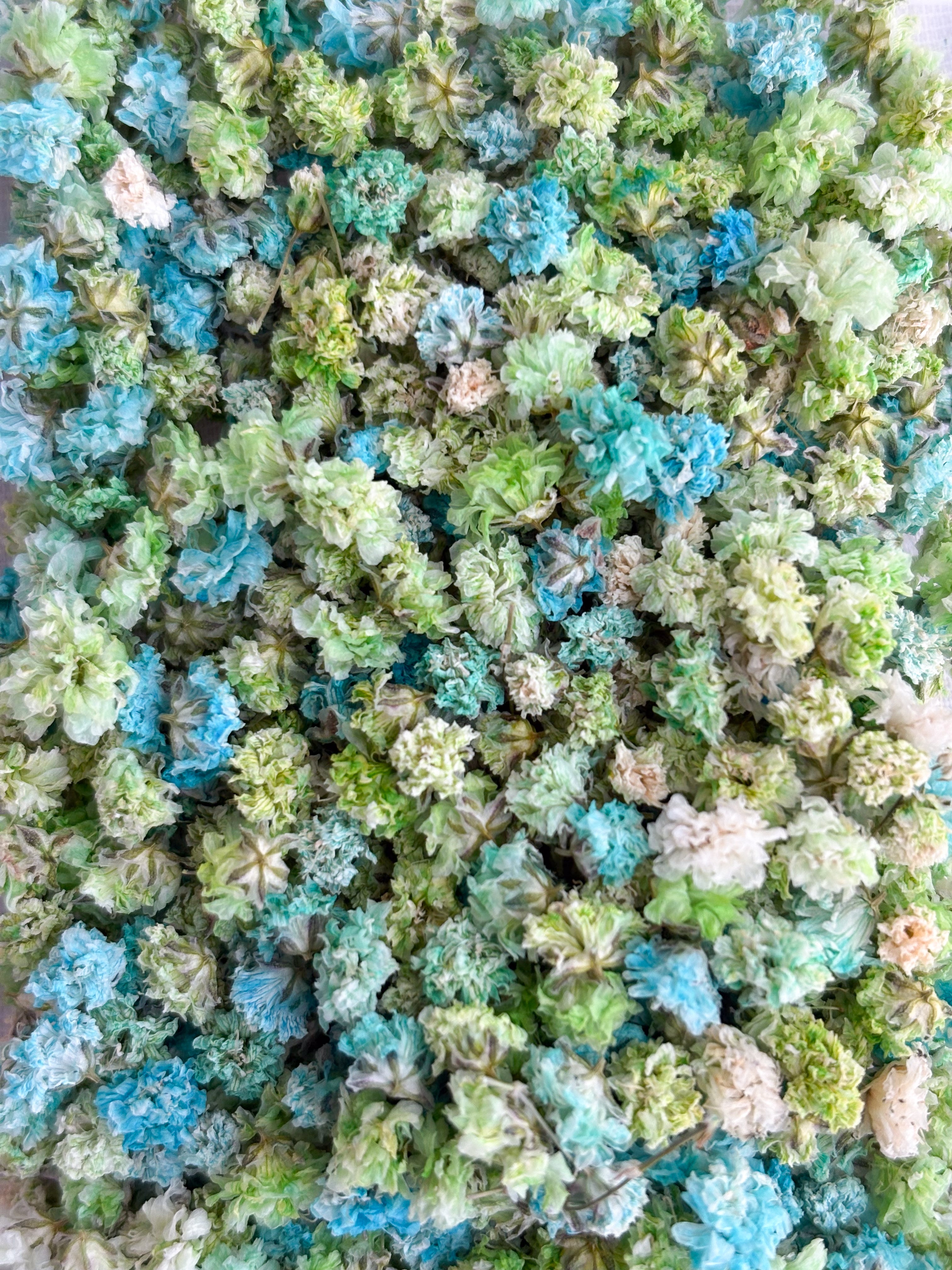 We use real flowers in all of our products, all with a different origin.