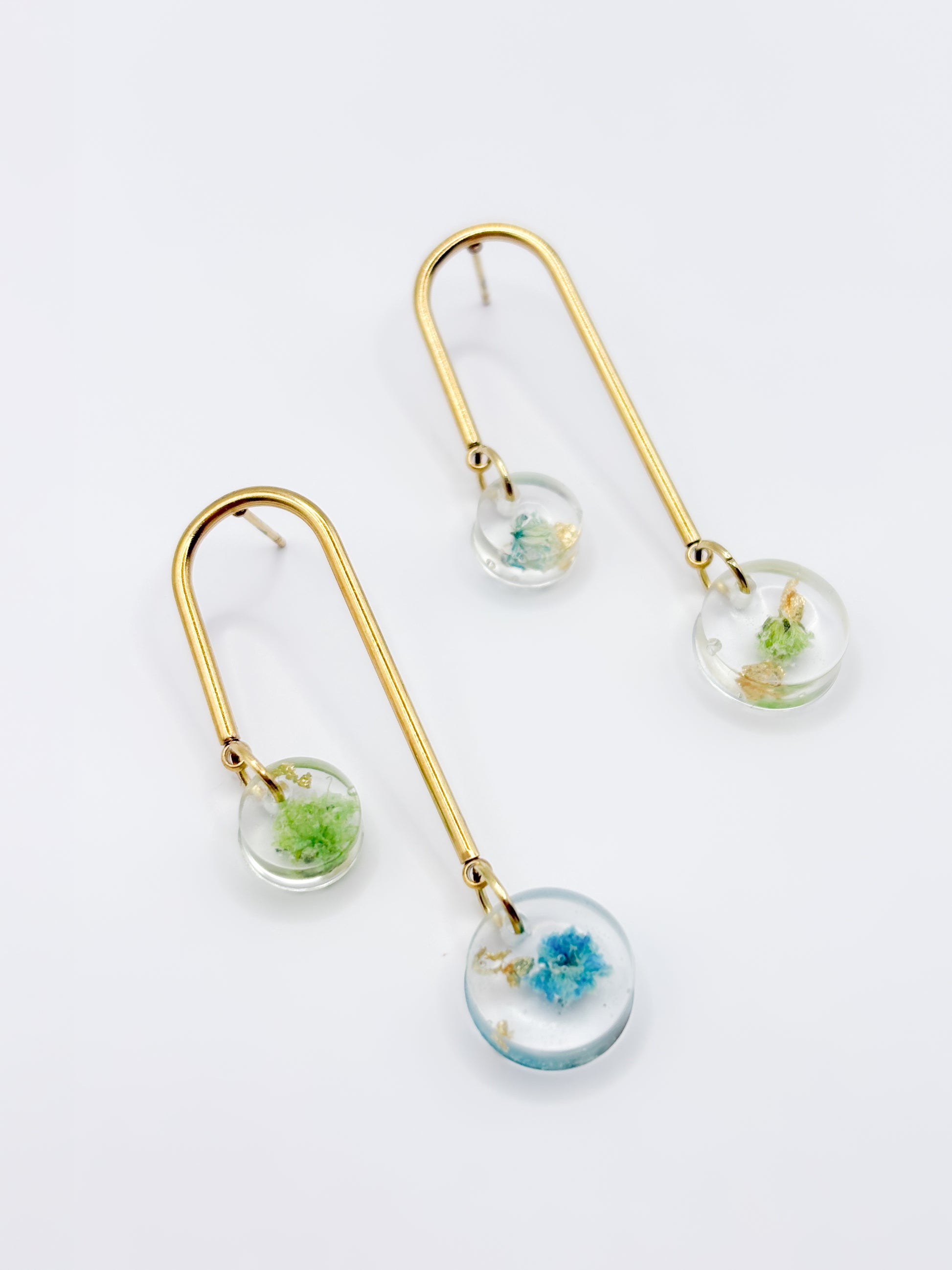 We exclusively use durable materials like stainless steel, gold-plated stainless steel, and 18K goldplated brass for our jewelry and high quality UV resistant resin to ensure longevity for everyday wear. Read more about our materials here.